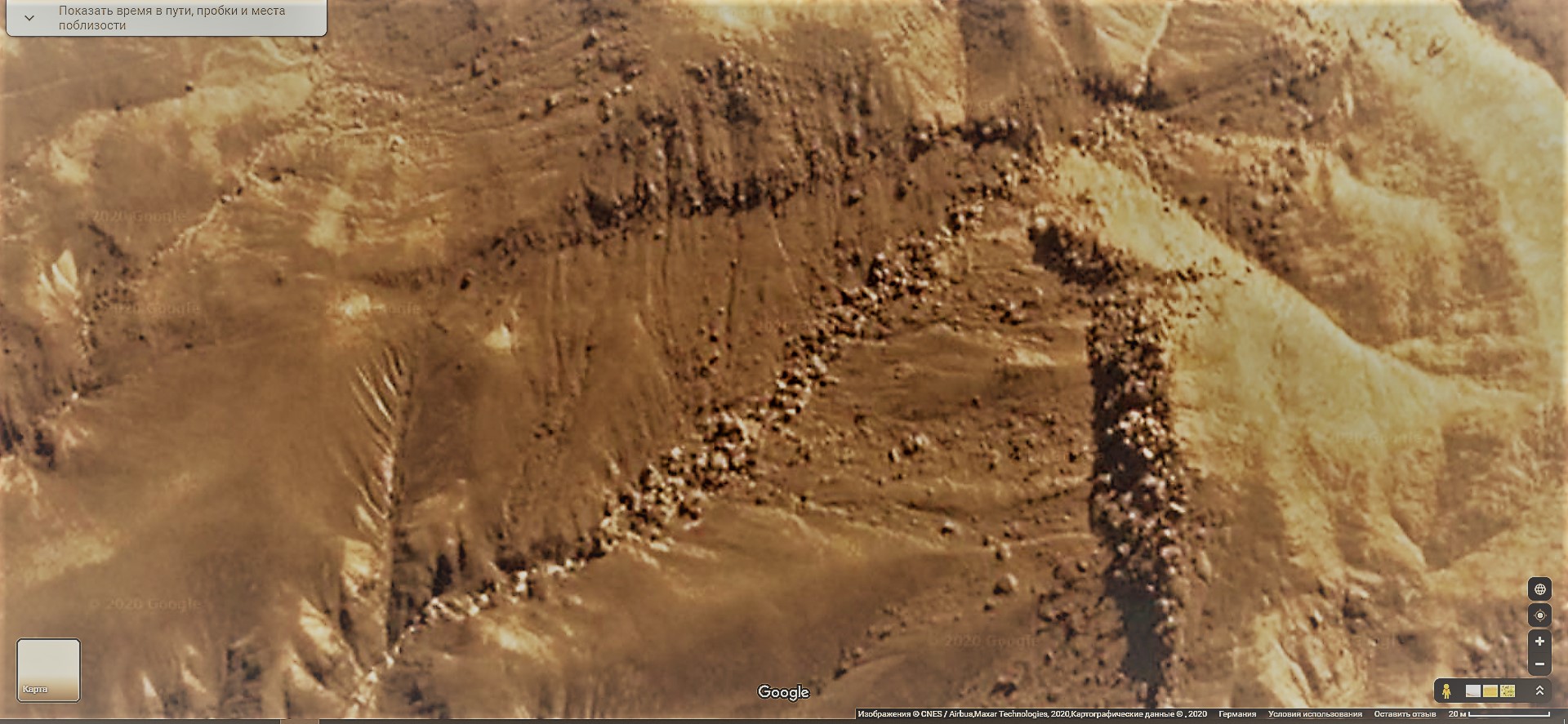 Ну и снова скриншоты с карт,которые нам предоставляет многоуважаемый Google.Ага,вот эти скриншоты с Южной Америки,вроде это Перу,но не уверен,но есть координаты,по которым можно посмотреть местоположения этих мест(вроде как каламбур,но это не важно).В принципе это просто местность,скажем так-довольно пересечённая и пересечена она во многих случаях не без вмешательства кого-то.И получается что эта местность представляет для кого-то какой-то интерес.Ну вот например-кому придёт в голову расчертить символы на земле просто так?Ну вот мы чертили подобные полосы на земле хотя-бы для игры в ножички,но там мы постепенно отрезали чью-то часть земли в свою пользу.А вот здсь кто и какими ножиками расчерчивал?Непонятно это всё,хотя бы потому что в то время когда появились эти образования на земле и наше время,когда мы играли в "землю" очень большой разрыв во времени имеют...Много раз люди брались разгадать,понять и объяснить всем-что это и для чего.Или вот ещё скриншот-очень похоже на развязку