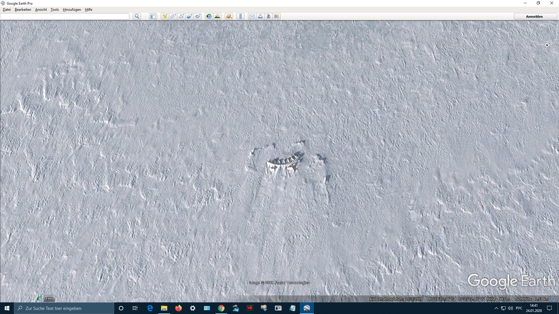 А вот ещё один скриншот с сервиса многоуважаемого Google,который называется GoogleEarth(если кто не знает),и эта находка ввела меня сначала практически в ступор(если честно-волосы дыбом встали),но потом я осознал что это ещё страшнее чем я предполагал.В принципе ничего особенного если бы это находилось в деревне какой-нибудь-ну,лежит колесо от телеги наполовину заметённое снегом и весной это колесо оттает и будет поставлено на телегу,но это совсем другое...Это не деревня,это Антарктида,место от зимовок полярников очень далеко расположенное,нет никаких следов и в помине,хотя очень странно что ЭТО никто не исследовал,никто не посетил это место и непонятно почему ЭТО никто не заретушировал.Хотя,судя по великому количеству непонятных и необъяснимых мест на планете,на ЭТО просто