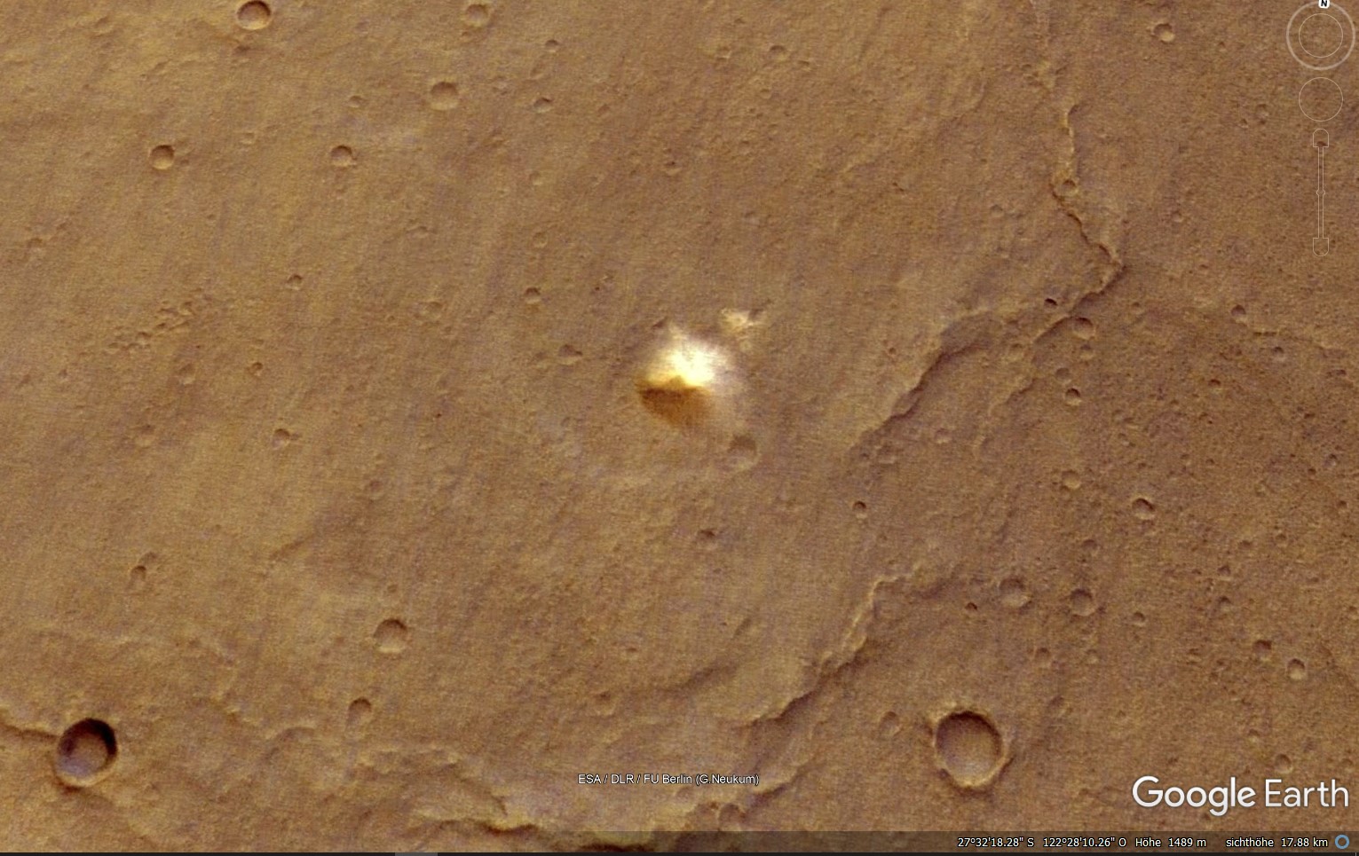 Луна-Луной,а по Марсу тоже как-то всё непонятные скриншоты.Но,благодаря нашему уважаемому Google и его сервису GoogleEarth можно получше рассмотреть поверхность Марса.В принципе ничего особенного,тем более это "ничего"придаёт виртуальным исследователям столько много виртуальных сил для поисков чего-нибудь особенного.Самое главное - к рассмотрению особенного и неособенного,смотреть в оба глаза.Ниже будут скрины,может и не качественные,но с помощью фильтров вроде получилось получше.Рассказывать-что там можно увидеть,смысла просто нет.И в любом случае каждый увидит то что увидит сам.Немного напоминает структуру спила дерева,но не это главное.Скриншоты снизу,немного перехимичил,но...